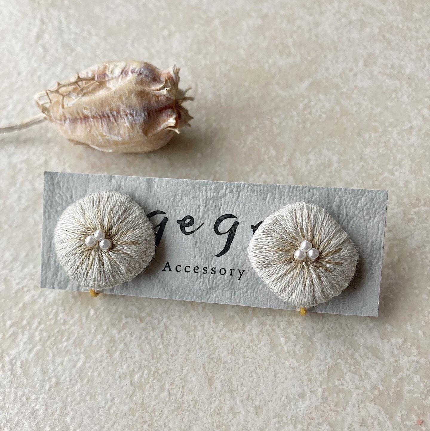 小粒のお花の刺繍イヤリング(白×カーキ)