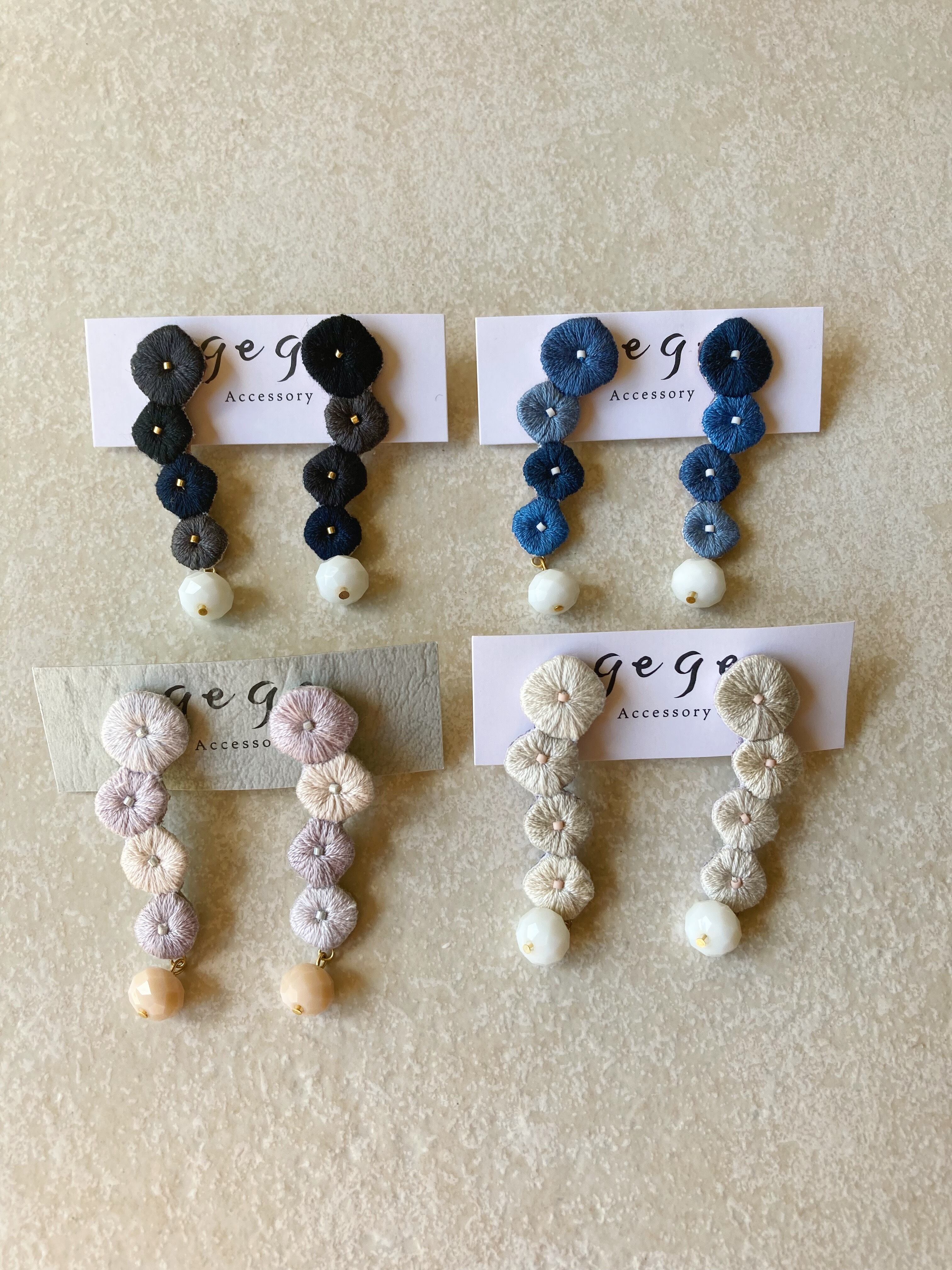 小さな花が連なり、朝の雫がポタンと落ちる様子を現した耳飾りです。